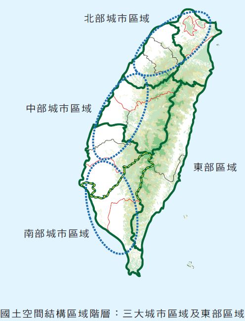 據國際所形成城市區域競爭態勢來看,分析具國際競爭力之城市區域為三大城市區域及東部區域